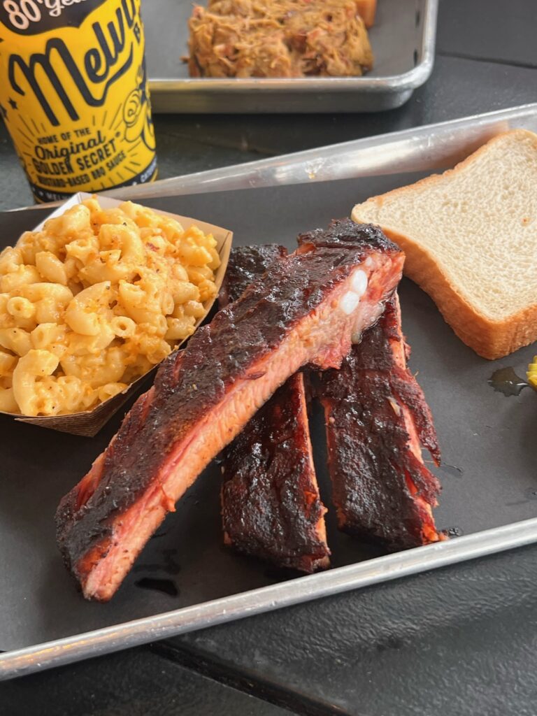 His father, Melvin, the second-generation owner and pitmaster, a WWII veteran and German prisoner of war, started the original Melvin’s Barbeque in 1961. “I wasn’t keen on going into the business when I was in high school because my dad didn’t pay me enough. So I tried other restaurants and found the best place to work was for my family. It required doing jobs I didn’t want to do, like jumping in the dumpster to push the garbage down and picking up trash in front of the restaurant.” Still, his pride of ownership is evident as David describes how his father’s philosophy about running the business and life in general shaped the success he enjoys today. “I realized then that this could be something really great.”